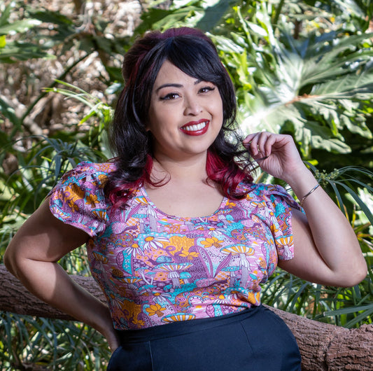 *Re-Stocked*Magnificent Mushrooms Tulip Sleeve Tee in Pink