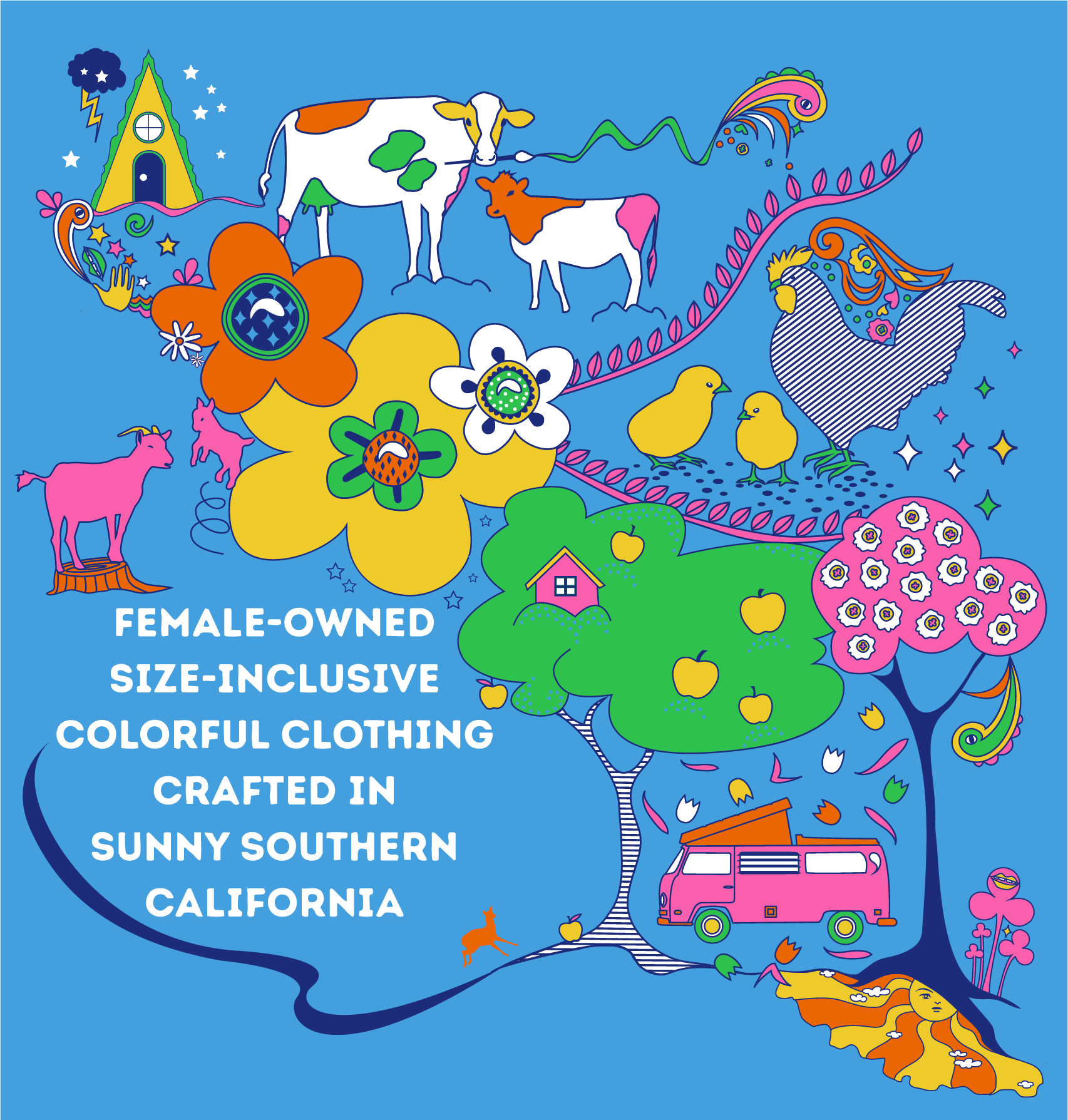 Blue Platypus is a small, woman-owned company where we design all our own prints and styles- no AI! We produce our colorful garments in natural fibers with small contractors in Southern California.