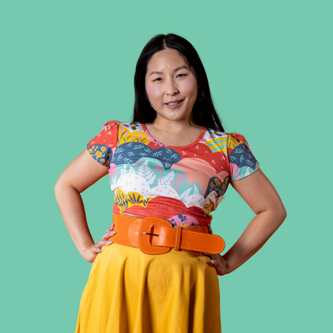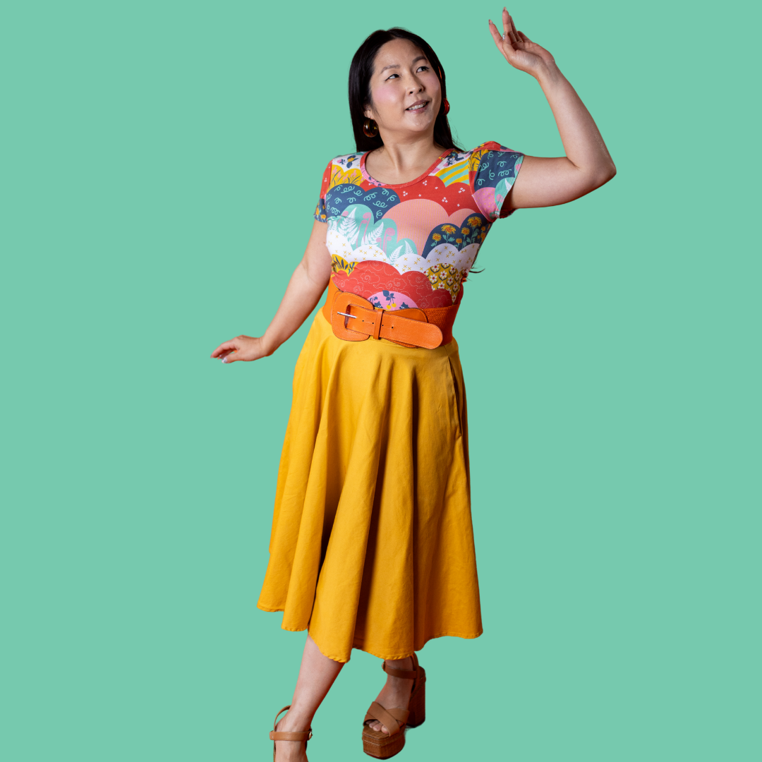 This pretty tee features our brand new meadow print of raccoons, sandhill cranes, strawberries, and corn stalks!