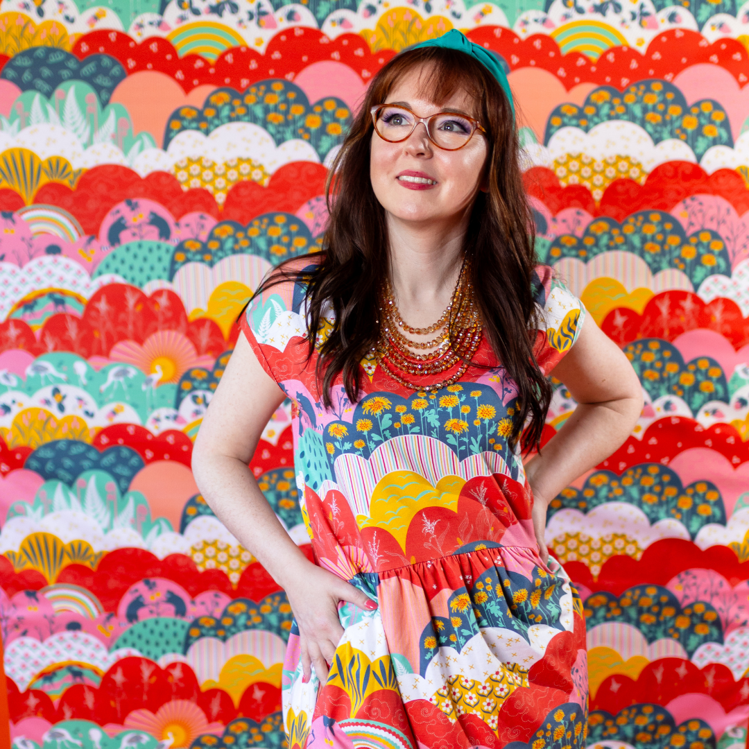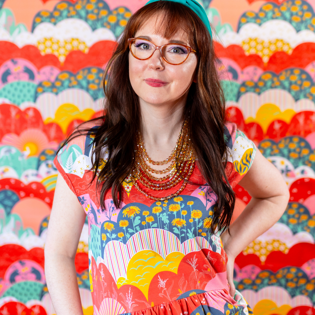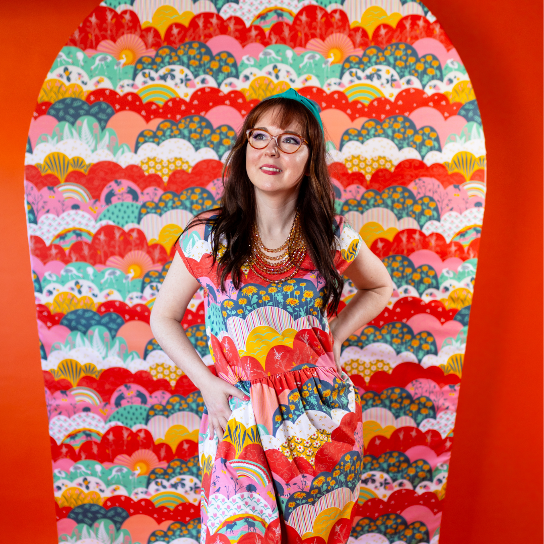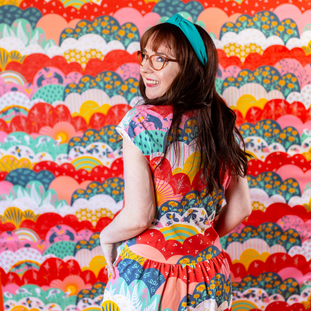 This lovely midi dress features our intriguing new meadow print full of raccoons, cranes, strawberries, corn stalks and more! The fabric is very soft & stretchy and this promises to be your most comfortable day to day frock!