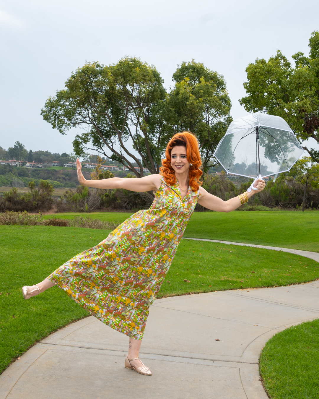 This lovely maxi dress features our gorgeous mushroom print featuring daffodils, fungi, fun geometric designs and more! in a brand new shape, with big, fun collar and easy shape! It positively pops with bright colors and our best-selling psychedelic fun-gi print!
