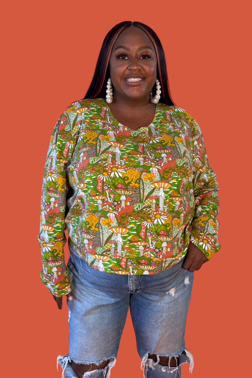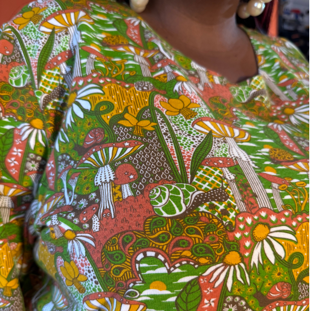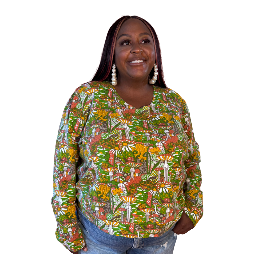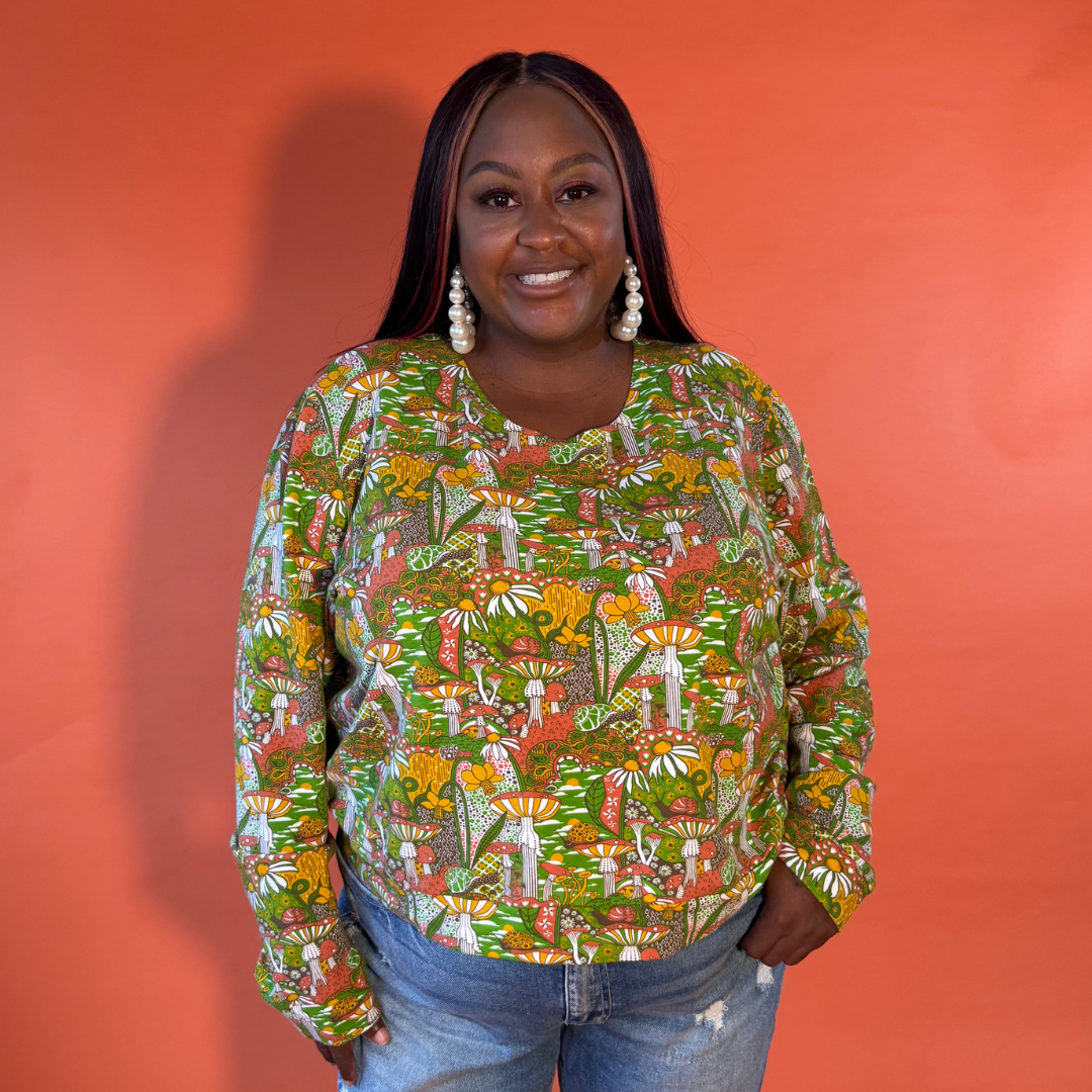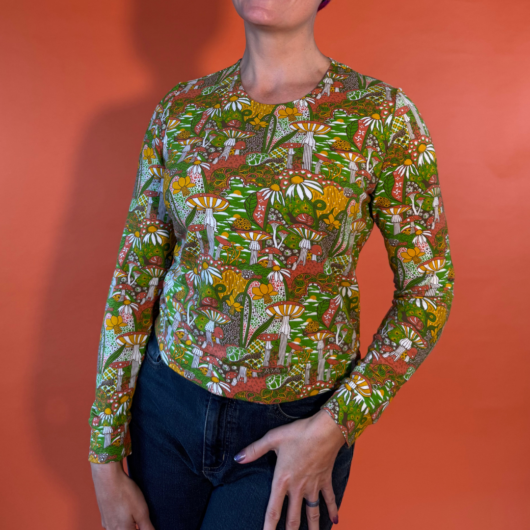 This gorgeous pullover features our original vintage inspired mushroom print in ALL 9 SIZES in a soft, lightweight French terry fabric! This cropped top features our best-selling design with snails, mushrooms, daffodils, etc. is designed to be worn with high-waisted skirts, pants, jeans or shorts, so please read measurements.